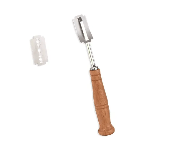 Made from 18/8 stainless steel and Romanian Beechwood; European grade; includes 15 double-edge dough scoring blades.
