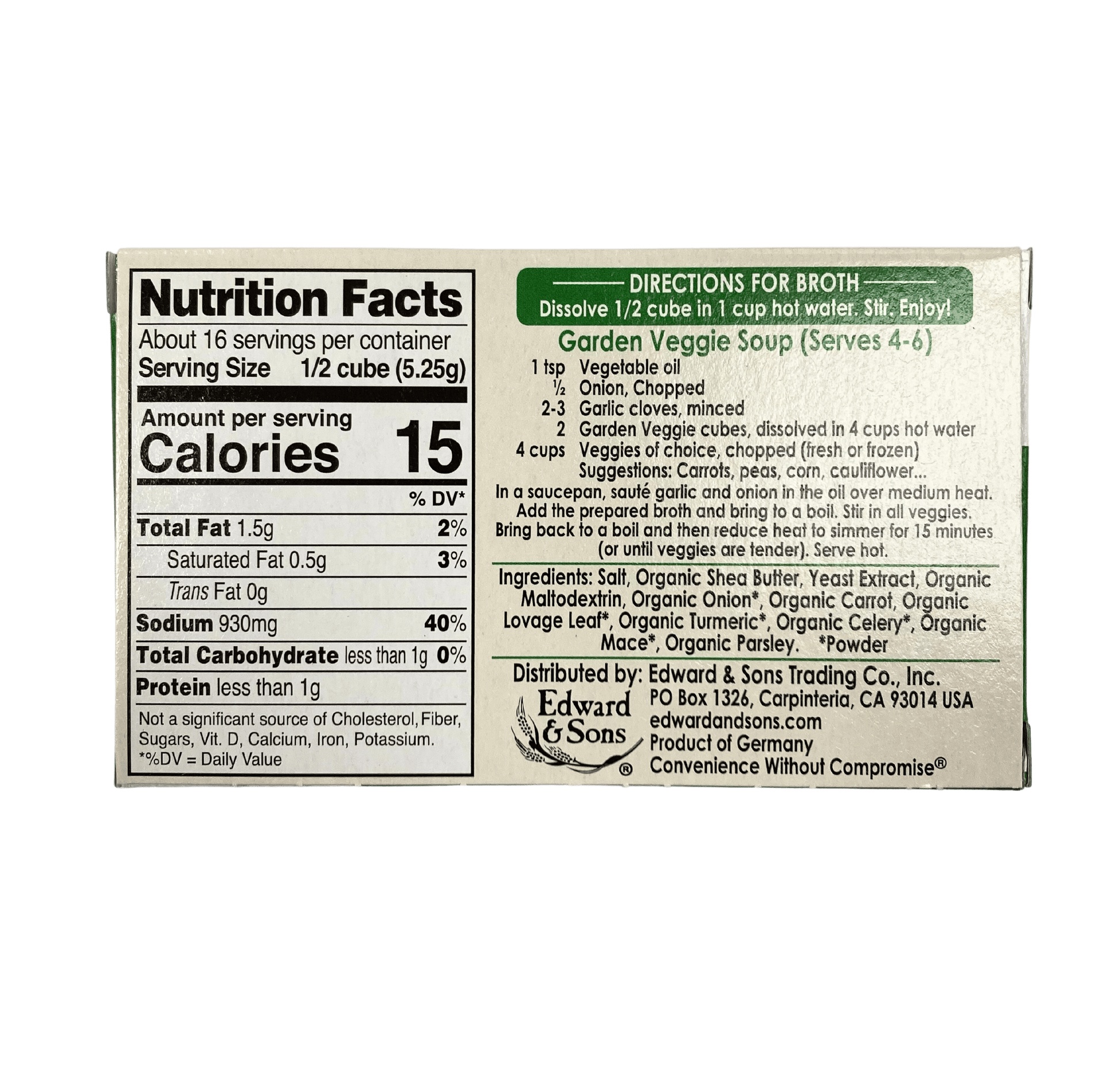 Edward & Sons ™ Vegan Bouillon Cubes make wholesome, satisfying broth in seconds - just add hot water. Their rich, full-bodied flavor enhances soups, stews, sauces, and more!