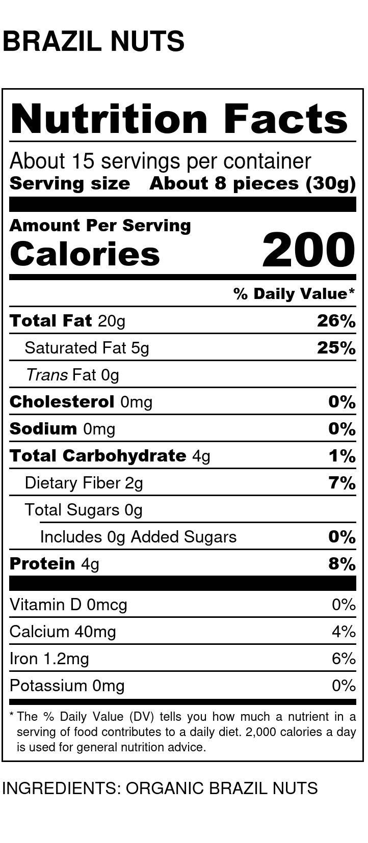 Enjoy your Brazil nuts chopped up in salads, stir-fry, or as a snack for a healthy fat and protein boost.
