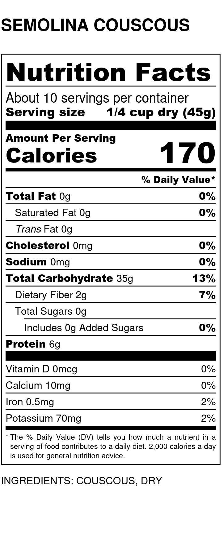 Offering 4g protein per serving makes this a filling and satisfying option that will keep you full for longer. Sounds good! So why not try our couscous today and see why it's a favorite among health-conscious consumers and foodies alike?