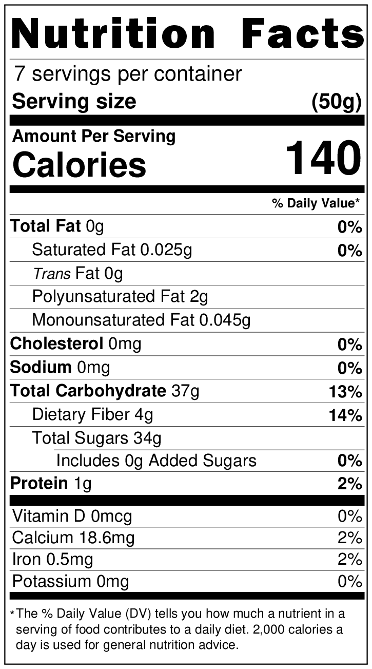 Not only do dates satisfy your sweet tooth, but they also come packed with many health perks. Loaded with fiber, essential minerals, and a boost of natural energy, our organic Deglet Noor dates are your go-to snack for a guilt-free pick-me-up.