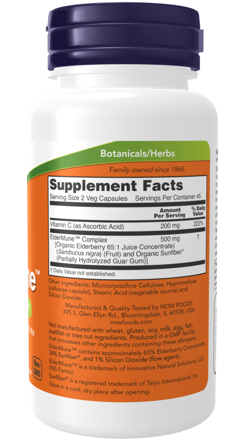 65:1 Elderberry Juice Concentrate With Vitamin C Elderberry (Sambucus nigra) is a multipurpose fruit used widely throughout Europe as a tonic to maintain health and well-being.* More recently, elderberry has been recognized for its high nutritive value, especially for its potent naturally occurring polyphenols and anthocyanins.* The unique process used to make the juice concentrate in ElderMune helps to preserve the bioactive polyphenols and anthocyanins native to elderberry.* Sunfiber®, a prebiotic fiber, is included to replace the fiber lost during the juicing process.