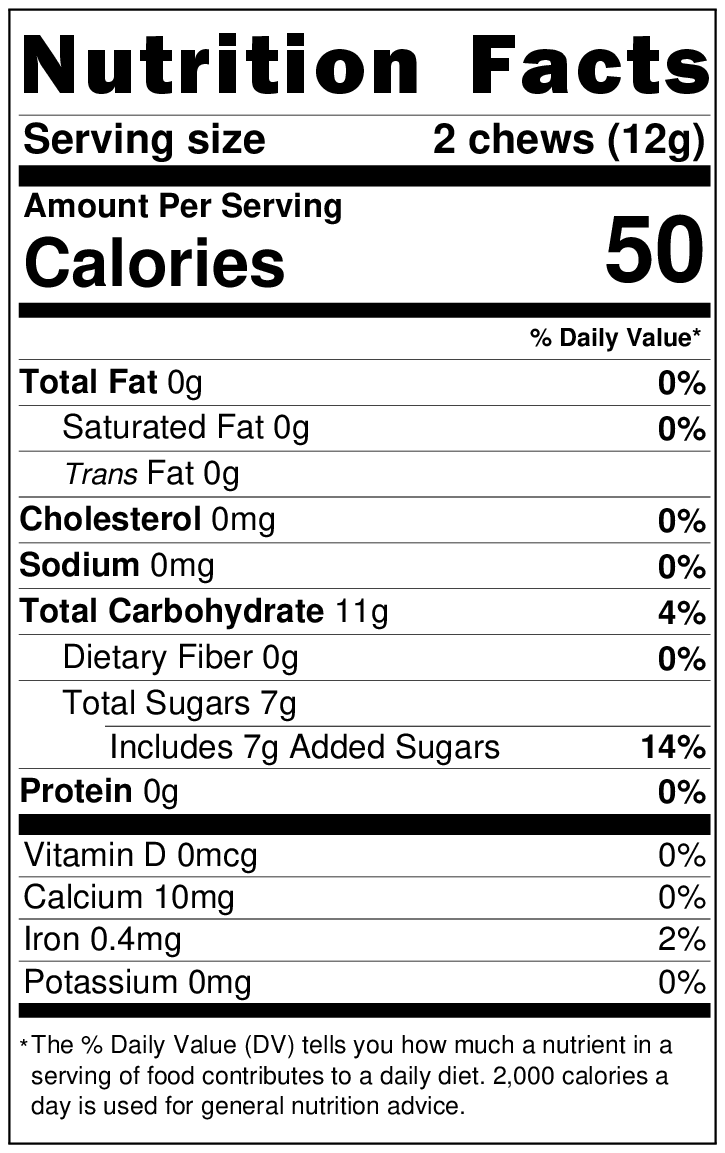 Allergen Statement: Product packed in a facility that also handles nuts, peanuts, soy, sesame, and wheat. 10 oz and 2 lb sizes only.