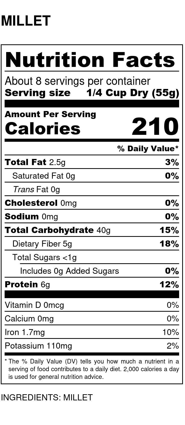 Millet Flour is stone ground and a whole grain. It has a subtle flavor and packed with vitamins and minerals. With minimal gluten, millet flour is often combined with wheat flour, cornflour or tapioca starch before use. In Europe, Eastern Europe and China, it is made into porridge, unleavened breads and tarts. In India, all three varieties are used in making flatbreads.