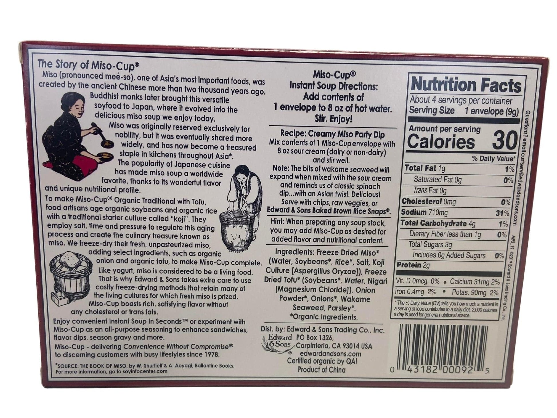 Like yogurt, miso is considered to be a living food. That is why Edward & Sons takes extra care to use costly freeze-drying methods that retain many of the living cultures for which fresh miso is prized. Miso-Cup boasts rich, satisfying flavor without any cholesterol or trans fats.