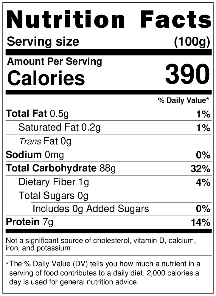 Allergen Statement: Product packed in a facility that also handles nuts, peanuts, soy, sesame, and wheat. 18 oz size only.