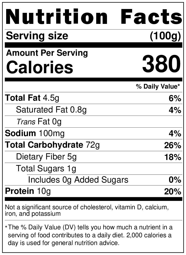 Allergen Statement: Product packed in a facility that also handles nuts, peanuts, soy, sesame, and wheat. 18 oz size only.