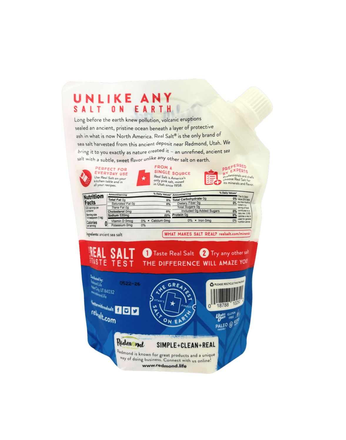 Discover the pure taste of Redmond Real Salt, harvested from an ancient sea bed in Utah. This unprocessed sea salt contains over 60 trace minerals with nothing added or removed. Experience the difference in flavor while benefiting from natural silica that supports bone and connective tissue health. Elevate your cooking naturally.