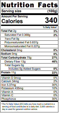 Allergen Statement: Product packed in a facility that also handles nuts, peanuts, soy, sesame, and wheat. 5 lb size only.